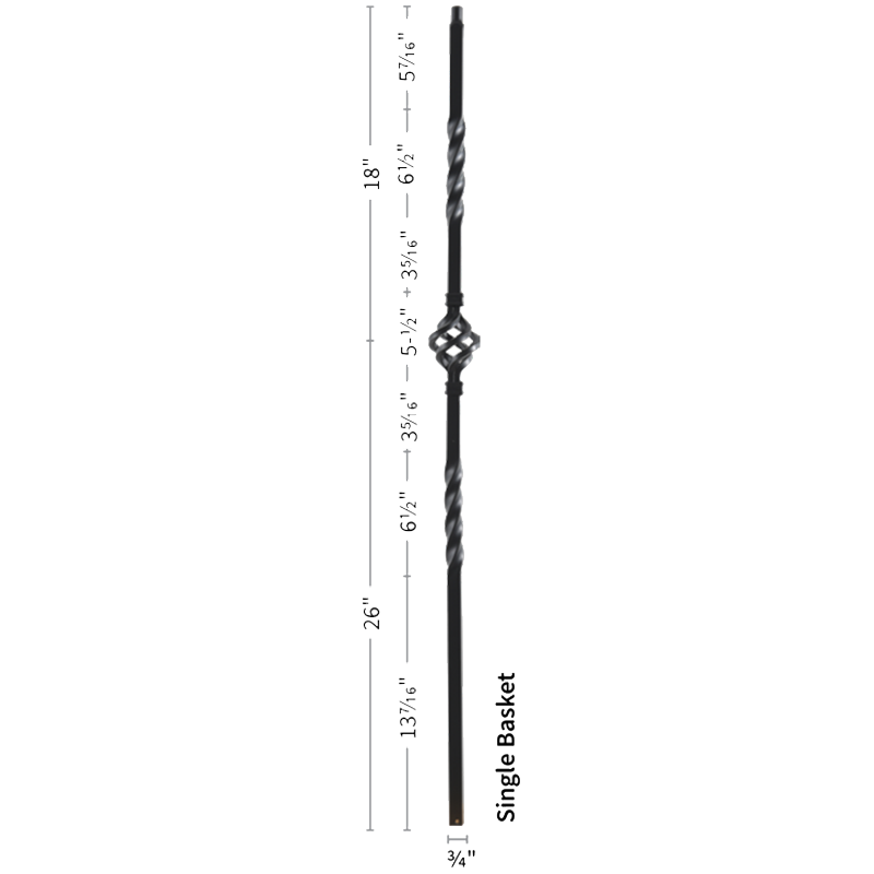 The 9903TB Single Basket baluster is a top selling staple in the stair and rail industry. As fads fade in and out our hollow iron baluster offers a timeless look of simplicity. The powder coated finish ensures a lifespan free of knicks, chips and dents. Light weight hollow construction makes for an easy and seamless installation. This baluster pairs with any 3/4” baluster shoe like the 9962 flat or 9963 angled shoes. Even a proper baluster replacement can do wonders for the style of your stairwell giving it a quaint but modern touch.