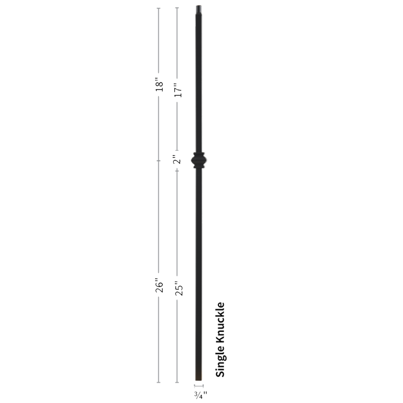The 9906TB Single knuckle baluster is a top selling staple in the stair and rail industry. As fads fade in and out our hollow iron baluster offers a timeless look of simplicity. The powder coated finish ensures a lifespan free of knicks, chips and dents. Light weight hollow construction makes for an easy and seamless installation. This baluster pairs with any 3/4” baluster shoe like the 9962 flat or 9963 angled shoes. Even a proper baluster replacement can do wonders for the style of your stairwell giving it a quaint but modern touch