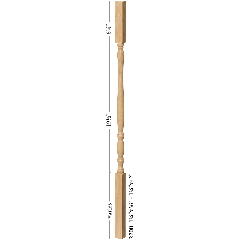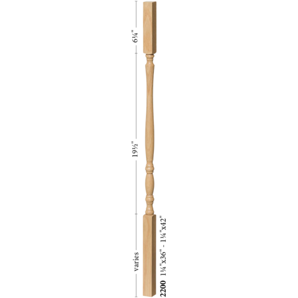 The 2200 style Block top Utah series baluster provides a stunning display of structure. The wooden baluster offers a quaint sense of old world charm to any railing system. The turning puts a ultra-fine touch of elegance to an other wise plain baluster. No matter the look you aspire to achieve, this baluster can offer a subtle dash of sophistication to any rail system. The versitillity allows this baluster to be paired in a range of styles. Cap you balusters with the 6010, 6710, or 6910 handrail in a matching wood species for the best results.