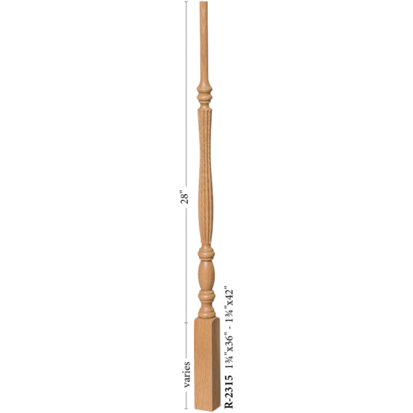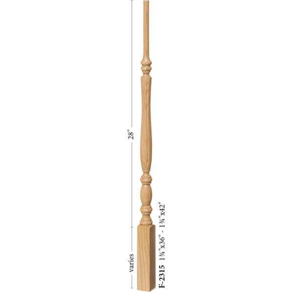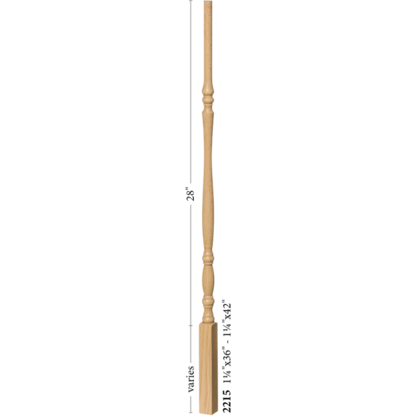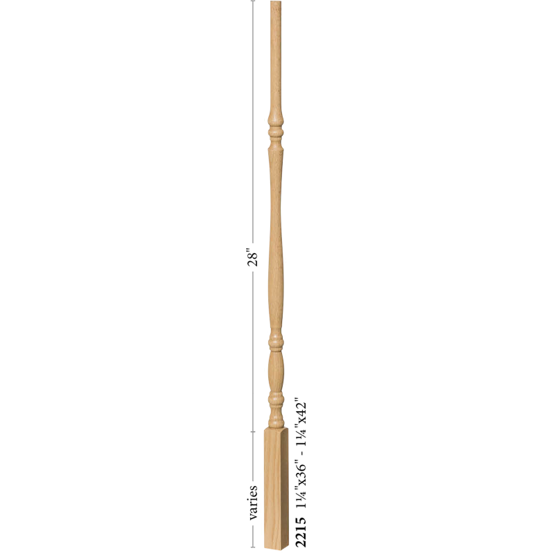 The 2215 wooden stair baluster is a Utah series Structural rise pin top baluster. This baluster offers the classic tradtional style simplicity. The turning puts a ultra-fine touch of elegance to an other wise plain baluster. No matter the look you aspire to achieve, this baluster can offer a subtle dash of sophistication to any rail system. The versitillity allows this baluster to be paired in a range of styles. Cap you balusters with the 6010 handrail in a matching wood species for the best results.