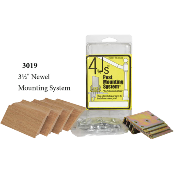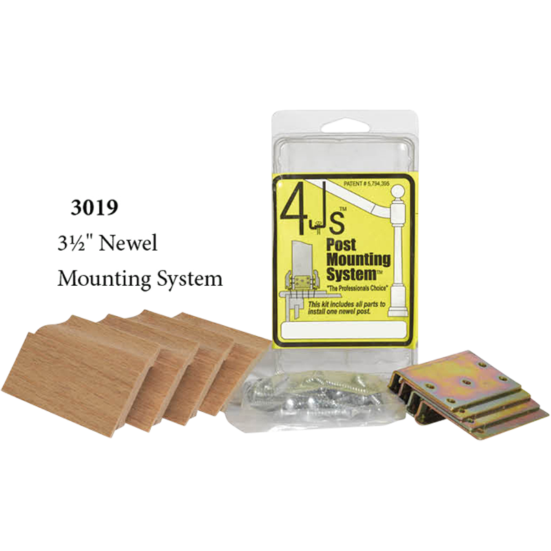 3019- 4JS newel fastening system is sure to hold your newel tightly in place with minimal flex or wobble. Features an 4 angled brackets for flush mounting. Along with molding for the efficient and seamless newel post installation.