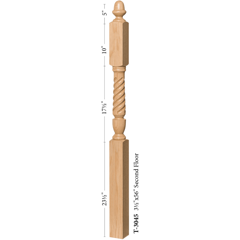 The 3045 Newel is available in most every common wood species. Solid hardwood construction ensure the highest quality. Finished newels often resemble finely made furniture.