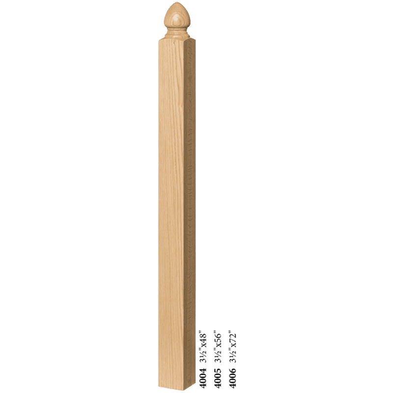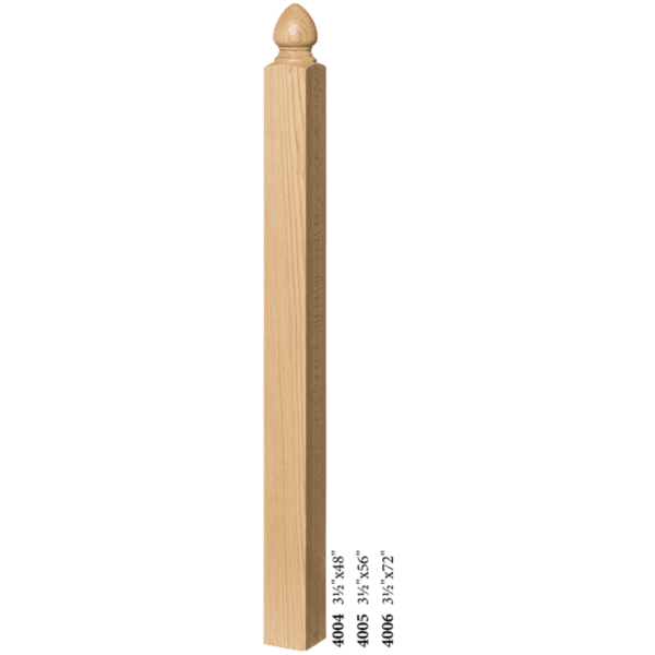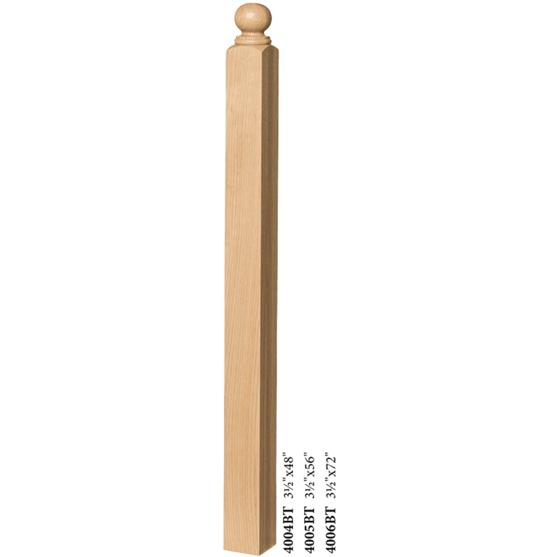 The 4004BT Newel is available in most every common wood species. Solid hardwood construction ensure the highest quality. Finished newels often resemble finely made furniture.