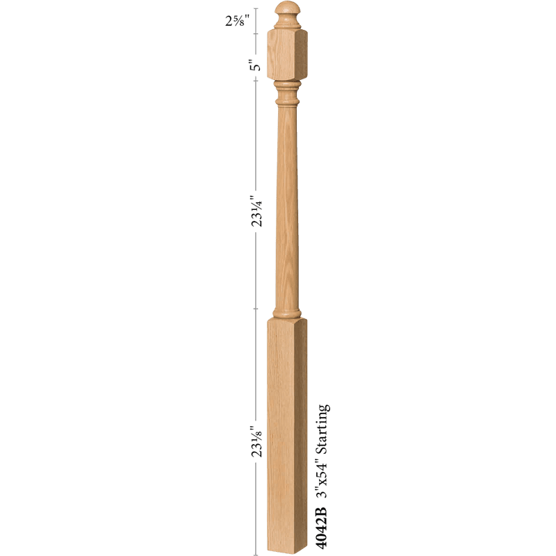 The 4042B Newel is available in most every common wood species. Solid hardwood construction ensure the highest quality. Finished newels often resemble finely made furniture.