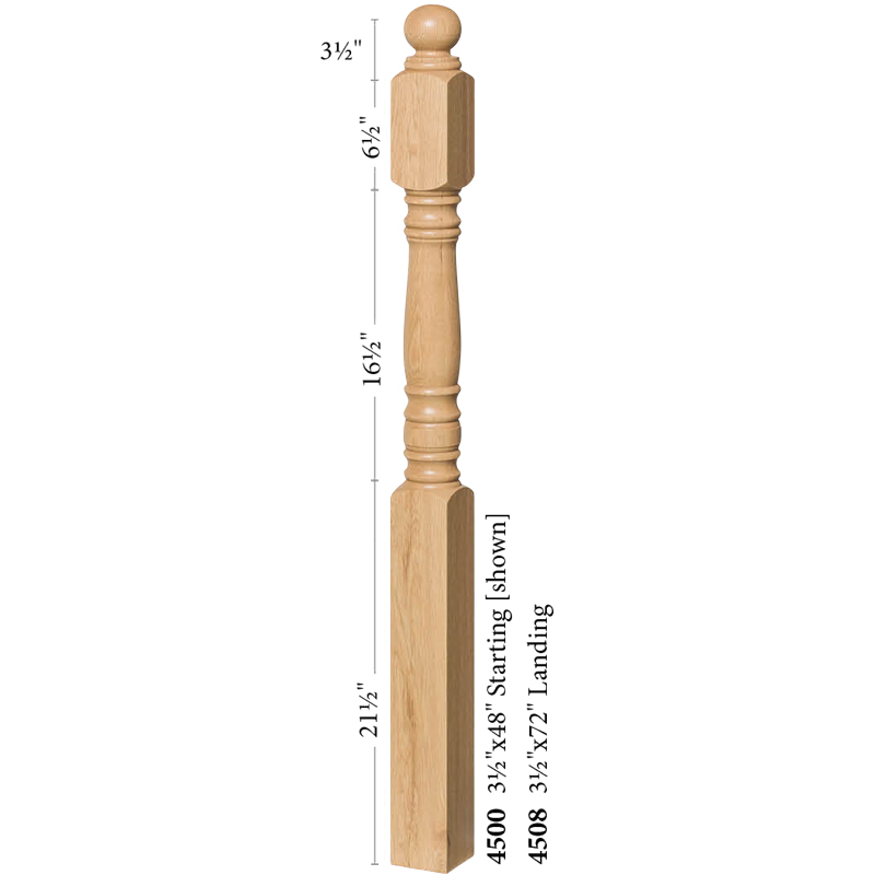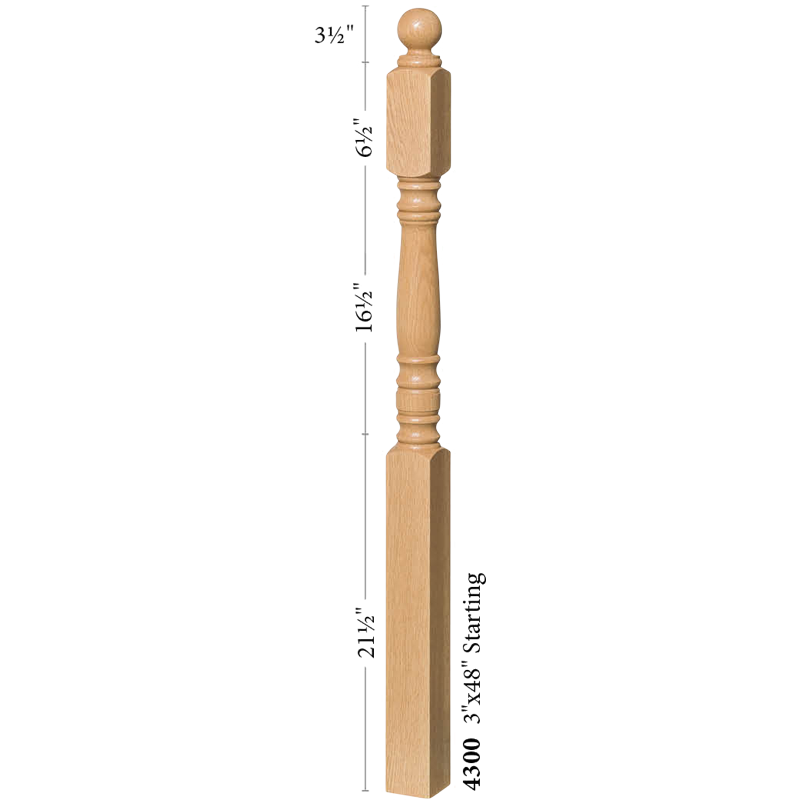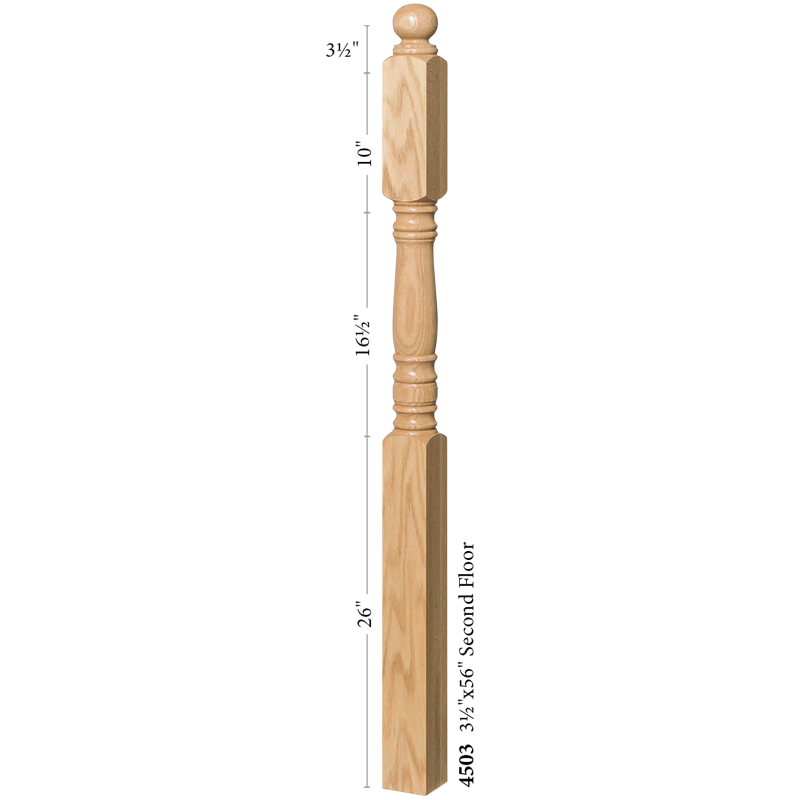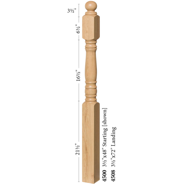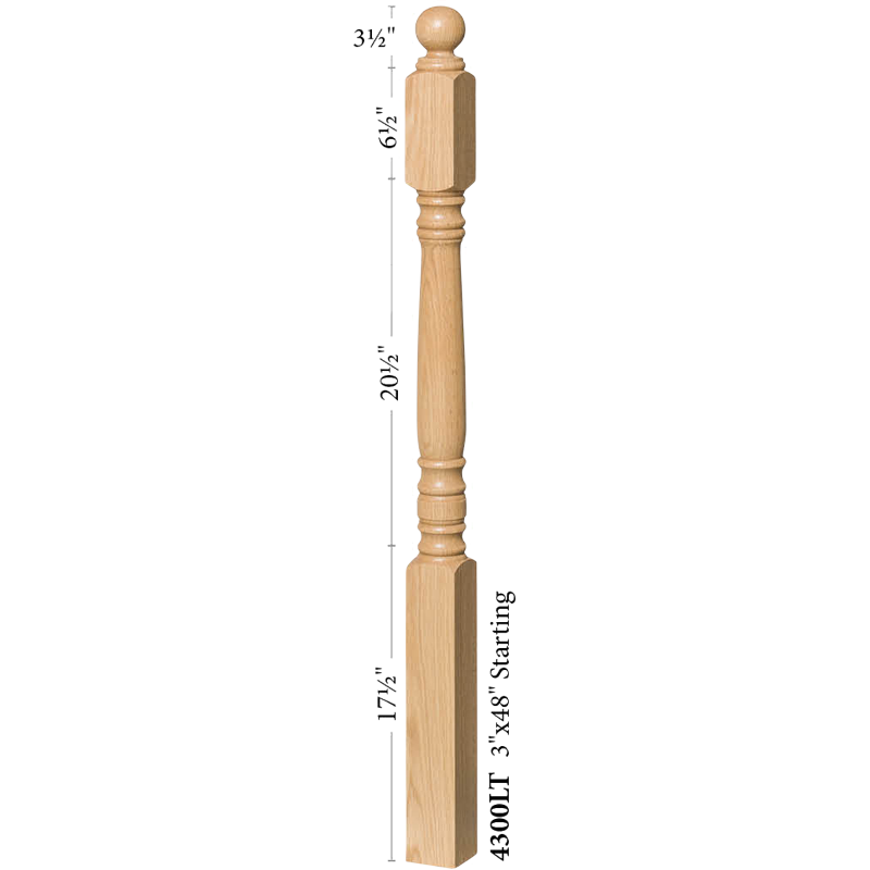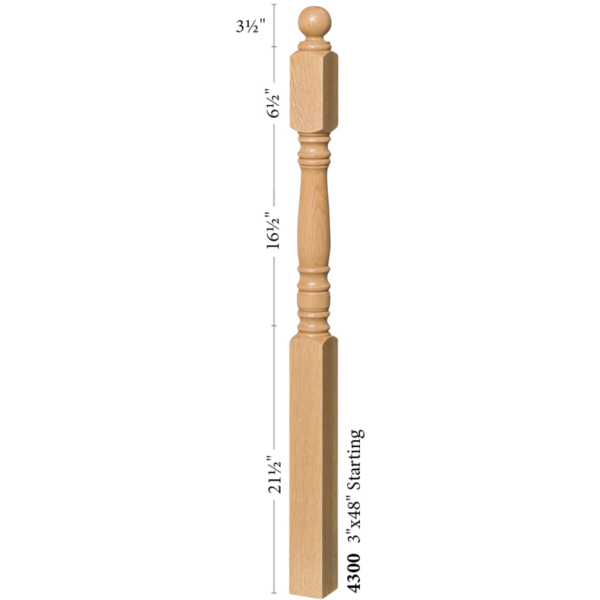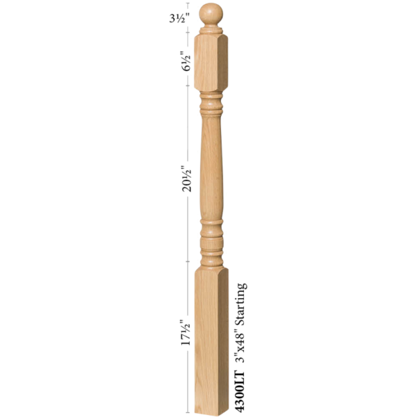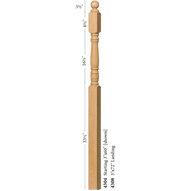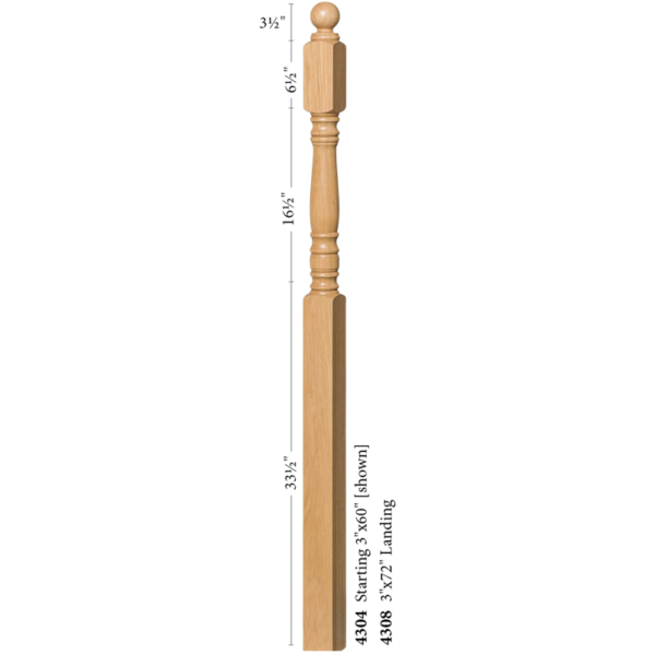 The 4300 Top Newel is available in most every common wood species. Solid hardwood construction ensure the highest quality. Finished newels often resemble finely made furniture.