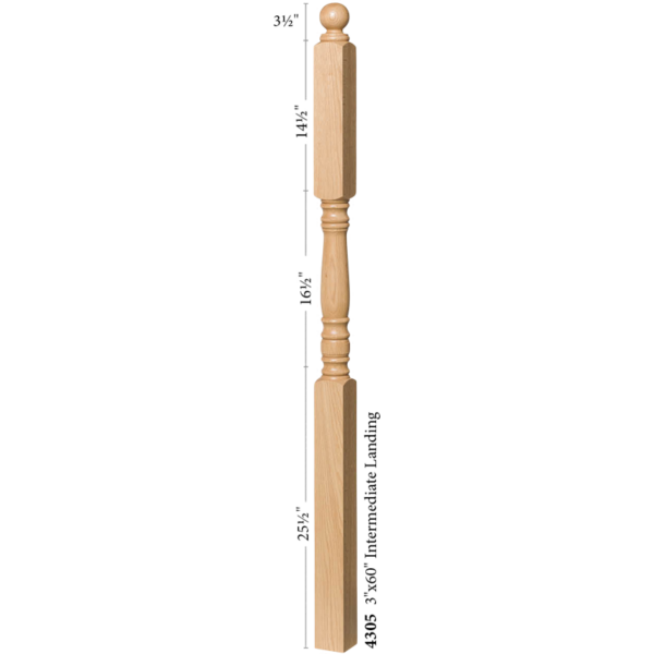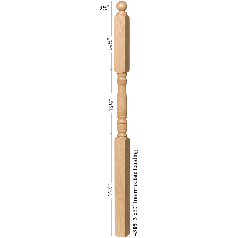 The 4305 Top Newel is available in most every common wood species. Solid hardwood construction ensure the highest quality. Finished newels often resemble finely made furniture.