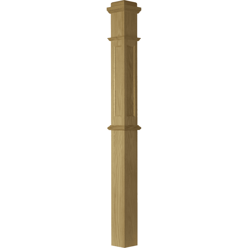 The AFP4375 Box Newel is a traditional style box newel that is widely adaptable in many instances. The sleek non-skirted newel is a classic post which features clean, straight lines and a stylized cap. The shaker door paneling in the shaft of the post adds a sophisticated, ornate character to the post. Its modest stature makes it great for a starting newel to your staircase, or it can be widely used throughout the railing system.