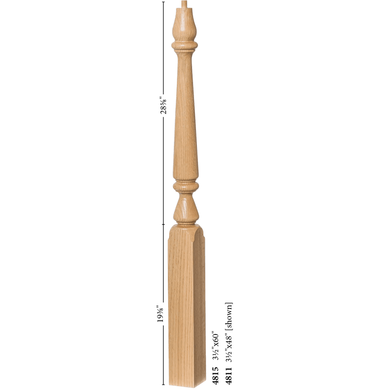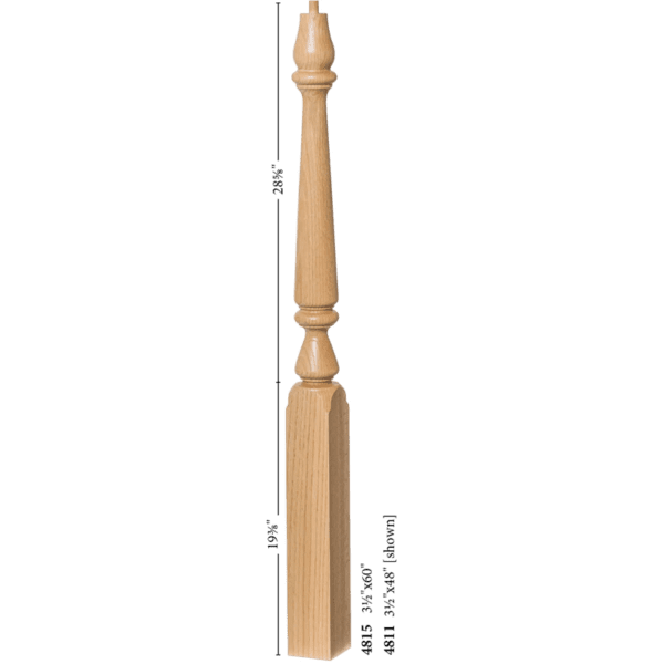 The4811 Newel is available in most every common wood species. Solid hardwood construction ensure the highest quality. Finished newels often resemble finely made furniture.