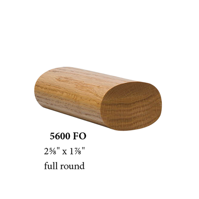 The 5600FO traditional style handrail is available in most every common wood species. Solid hardwood construction ensures the highest quality. Finished railing often resemble finely made furniture.