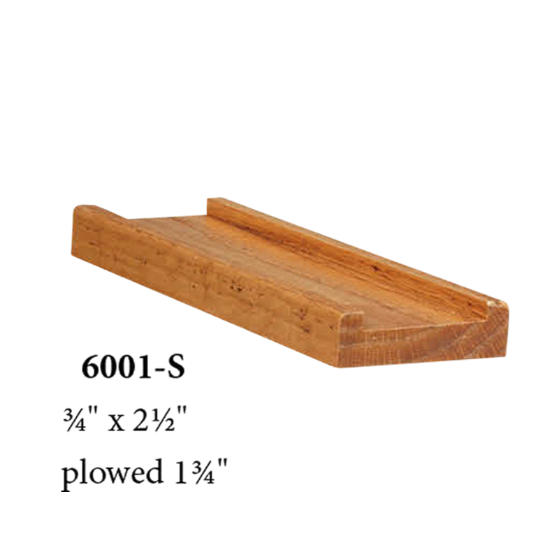 The 6001-S style shoe rail is available in most every common wood species. Solid hardwood construction ensures the highest quality. Finished railing often resemble finely made furniture.
