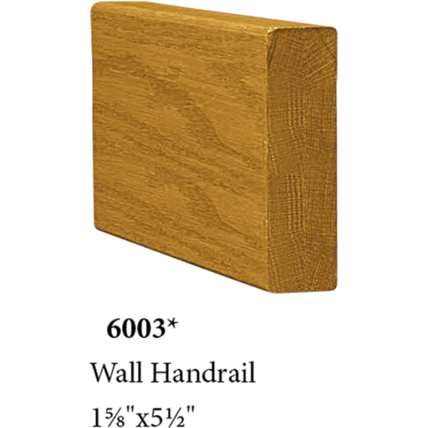 The 6003 style handrail is available in most every common wood species. Solid hardwood construction ensures the highest quality. Finished railing often resemble finely made furniture.