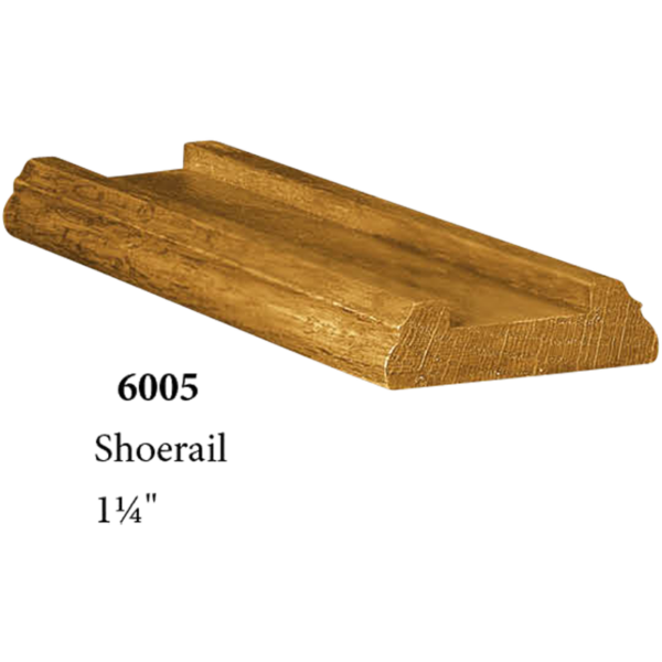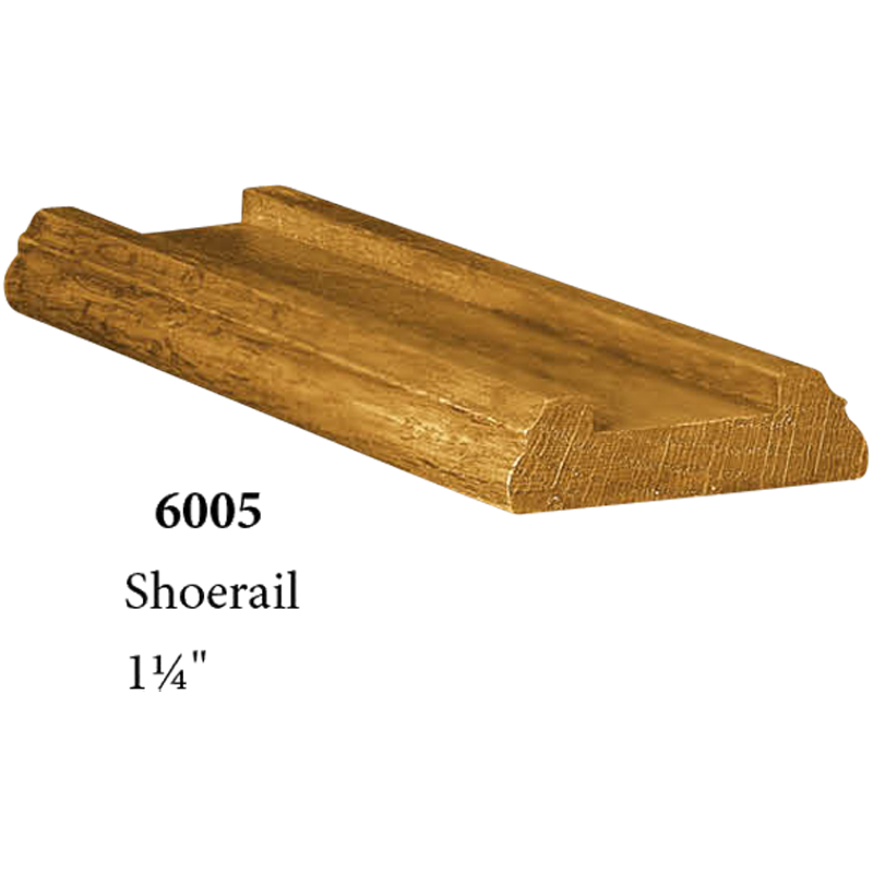 The 6005-style shoe rail is available in most every common wood species. Solid hardwood construction ensures the highest quality. Finished railing often resemble finely made furniture.