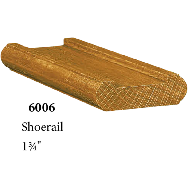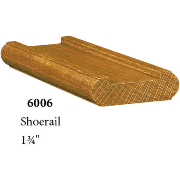 The 6006-style shoe rail is available in most every common wood species. Solid hardwood construction ensures the highest quality. Finished railing often resemble finely made furniture.