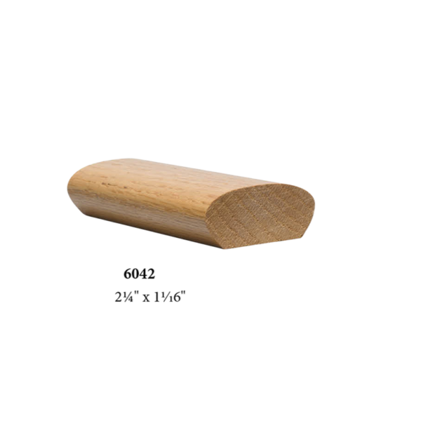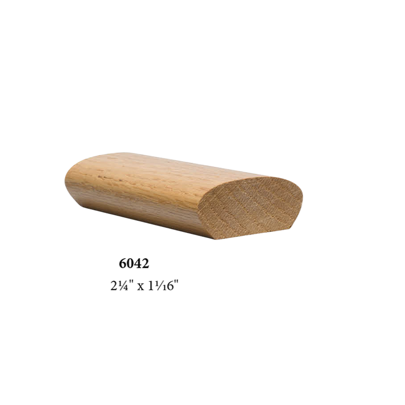 The 6042 style handrail is available in most every common wood species. Solid hardwood construction ensures the highest quality. Finished railing often resemble finely made furniture.