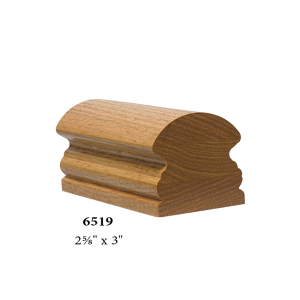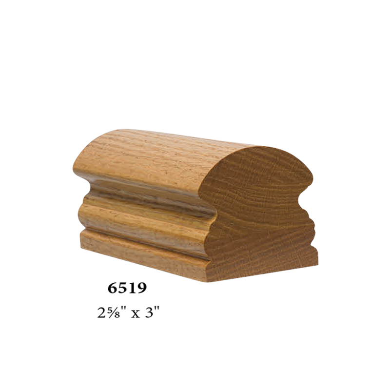 The 6519 traditional style handrail is available in most every common wood species. Solid hardwood construction ensures the highest quality. Finished railing often resemble finely made furniture.