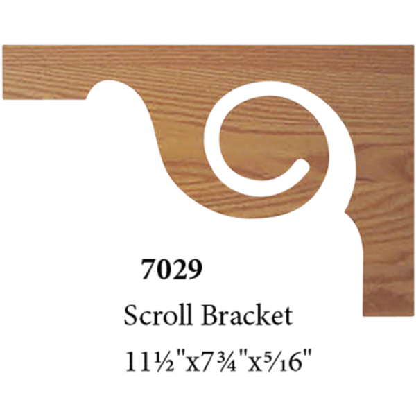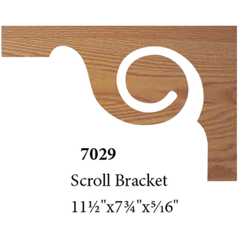 The 7029 decorative scroll tread bracket is available in red oak and poplar