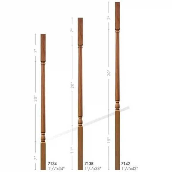 The 7134 colonial series baluster is a block top elegant rise turned profile 1.25” baluster. This baluster offers the classic colonial era style simplicity. The block top offers the appearance of structure and oragnization. The turning puts a ultra-fine touch of elegance to an other wise plain baluster. No matter the look you aspire to achieve, this baluster can offer a subtle dash of sophistication to any rail system. The versitillity allows this baluster to be paired in a range of styles. Cap you balusters with the 6010 handrail in a matching wood species for the best results.