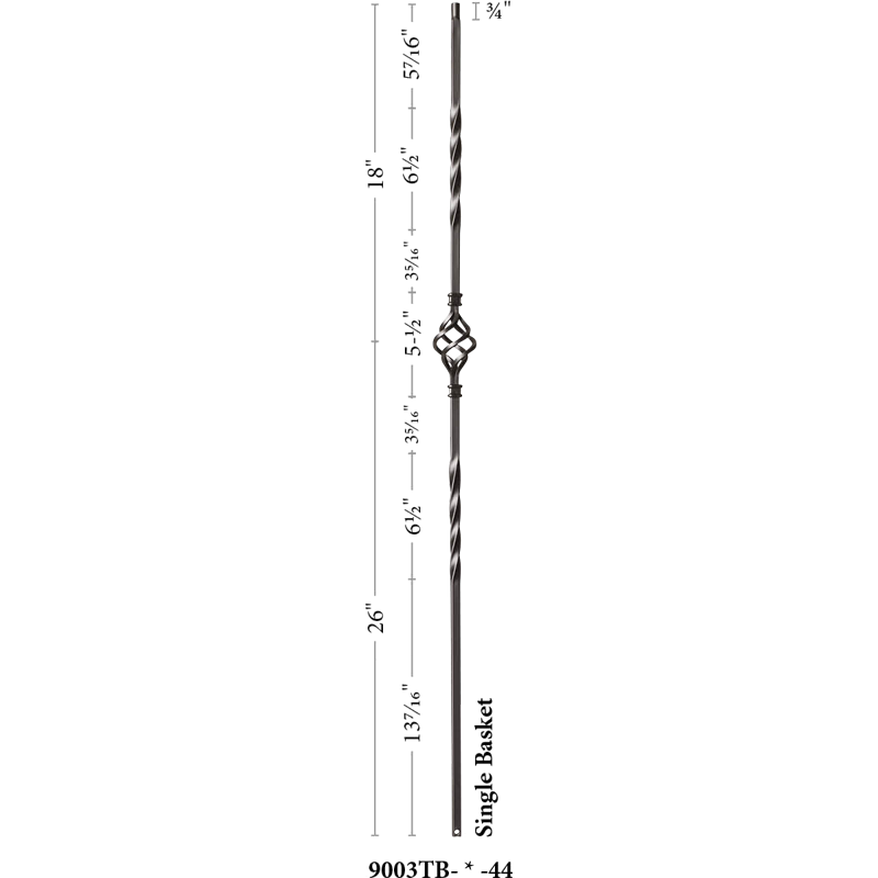 The 9003TB Single Basket baluster is a top selling staple in the stair and rail industry. As fads fade in and out our hollow iron baluster offers a timeless look of simplicity. The powder coated finish ensures a lifespan free of knicks, chips and dents. Light weight hollow construction makes for an easy and seamless installation. This baluster pairs with any ½” baluster shoe like the 9062 flat or 9063 angled shoes. Even a proper baluster replacement can do wonders for the style of your stairwell giving it a quaint but modern touch.
