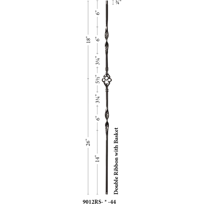 The 9012RS Double Ribbon with single basket baluster is a top selling staple in the stair and rail industry. As fads fade in and out our hollow iron baluster offers a timeless look of simplicity. The baskets add a subtle but intricate style. The powder coated finish ensures a lifespan free of knicks, chips and dents. Light weight hollow construction makes for an easy and seamless installation. This baluster pairs with any ½” baluster shoe like the 9062 flat or 9063 angled shoes. Even a proper baluster replacement can do wonders for the style of your stairwell giving it a quaint but modern touch