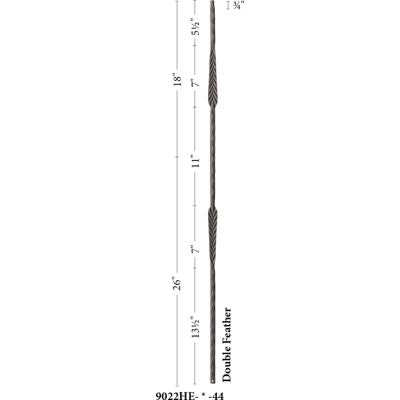 9022HE Double Feather with hammered edge Iron balusters 9/16″