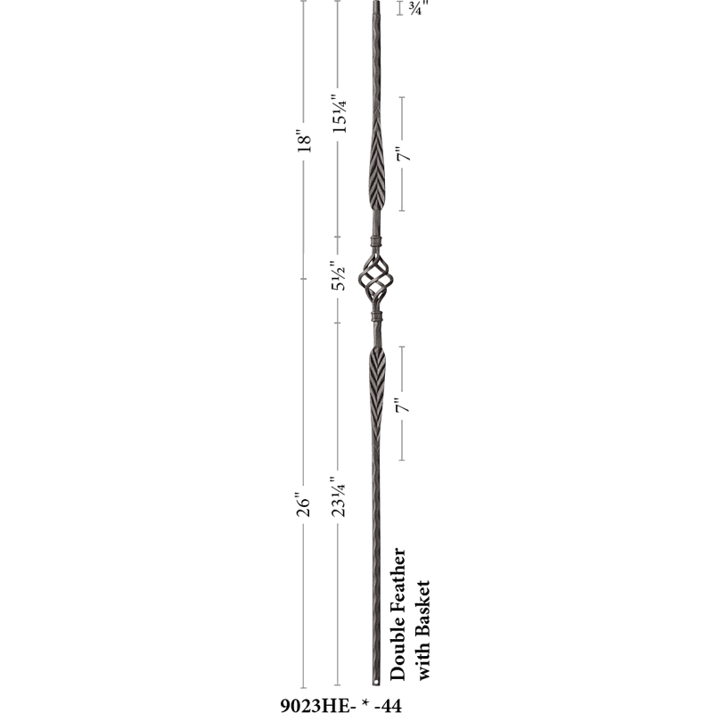 9023HE Double Feather single basket with hammered edge bar Iron balusters 9/16″