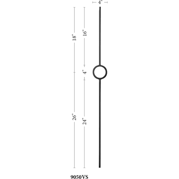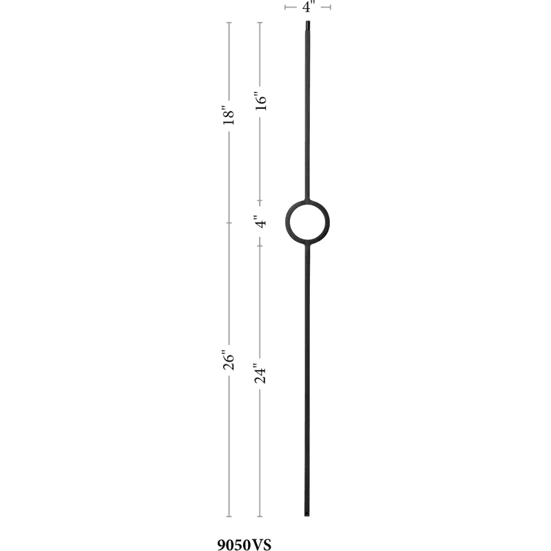 The 9050VS Single Ring baluster is a top selling staple in the stair and rail industry. As fads fade in and out our hollow iron baluster offers a timeless look of simplicity. The powder coated finish ensures a lifespan free of knicks, chips and dents. Light weight hollow construction makes for an easy and seamless installation. This baluster pairs with any ½” baluster shoe like the 9062 flat or 9063 angled shoes. Even a proper baluster replacement can do wonders for the style of your stairwell giving it a quaint but modern touch
