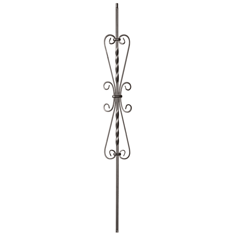 The 9057SS Scroll baluster is a top selling staple in the stair and rail industry. The 6-3/4” x 16-1/2”” scroll offers a dose of ornate quality to an otherwise simple railing system. As fads fade in and out our hollow iron baluster offers a timeless look of simplicity. The powder coated finish ensures a lifespan free of knicks, chips and dents. Light weight hollow construction makes for an easy and seamless installation. This baluster pairs with any ½” baluster shoe like the 9062 flat or 9063 angled shoes. Even a proper baluster replacement can do wonders for the style of your stairwell giving it a quaint but modern touch.