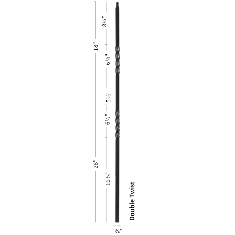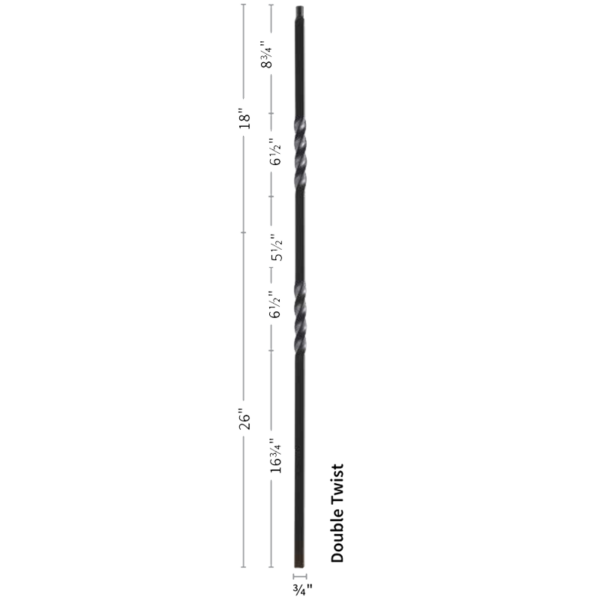 The 9902TB Double Twist baluster is a top selling staple in the stair and rail industry. As fads fade in and out our hollow iron baluster offers a timeless look of simplicity. The powder coated finish ensures a lifespan free of knicks, chips and dents. Light weight hollow construction makes for an easy and seamless installation. This baluster pairs with any 3/4” baluster shoe like the 9962 flat or 9963 angled shoes. Even a proper baluster replacement can do wonders for the style of your stairwell giving it a quaint but modern touch.