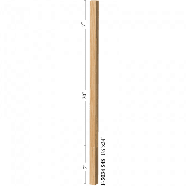 The F-5034/38/42 Craftsman style baluster is available in most every common wood species. Solid hardwood construction ensures the highest quality. Finished balusters often resemble finely made furniture.